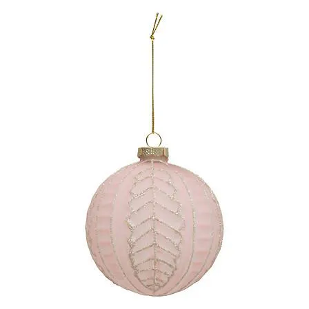 BOULE DE NOEL VERRE 100MM FEUILL ROSE