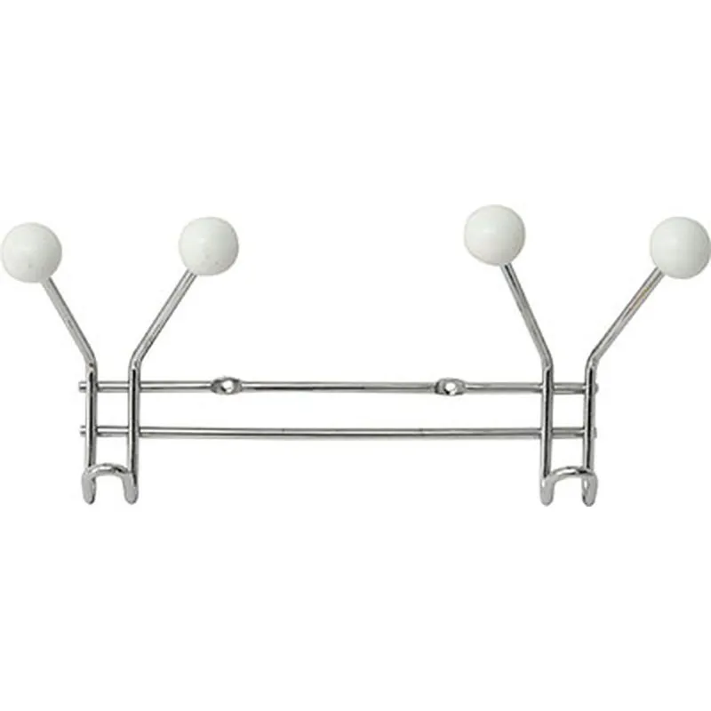 PATERE METAL 2 CROCHETS A FIXER DECORATION RESINE BLANCHE - CHROME/BLANC