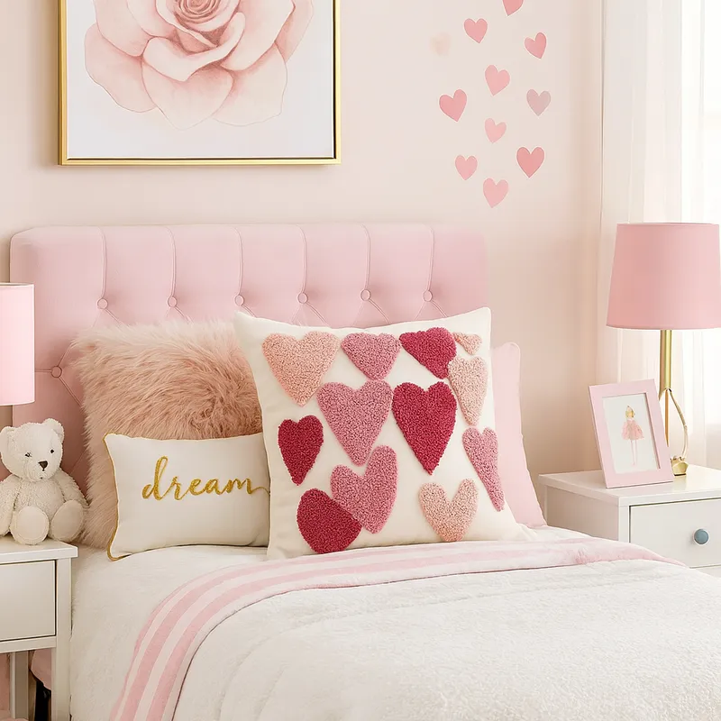 Coussin décoratif Cœurs roses & rouges