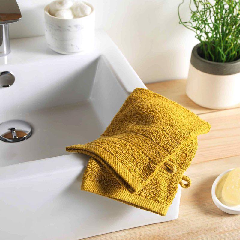 2 GANTS DE TOILETTE 15 x 21 CM EPONGE UNIE JACQUARD ESTEBAN OCRE