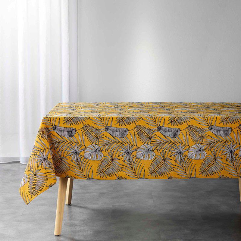 NAPPE RECTANGLE 140 x 240 CM POLYCOTON IMPRIME IDYLLE MOUTARDE