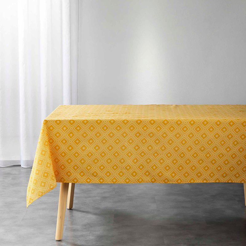 NAPPE RECTANGLE 140 x 240 CM POLYCOTON IMPRIME PUEBLA MOUTARDE