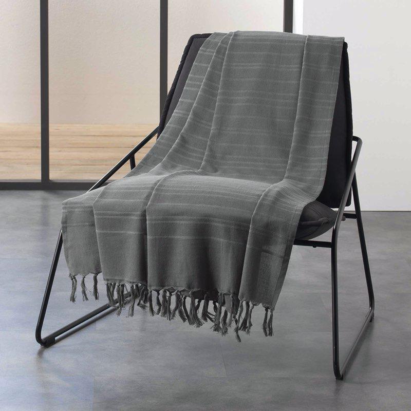 JETE DE CANAPE A FRANGES 220 x 240 CM COTON TISSE LILIA ANTHRACITE