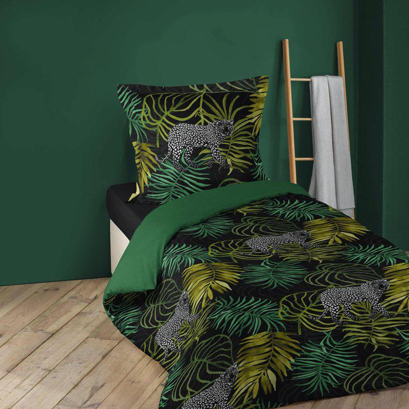 PARURE 2 P. 140 x 200 CM IMPRIME 42 FILS ALLOVER TROPICAL GREEN