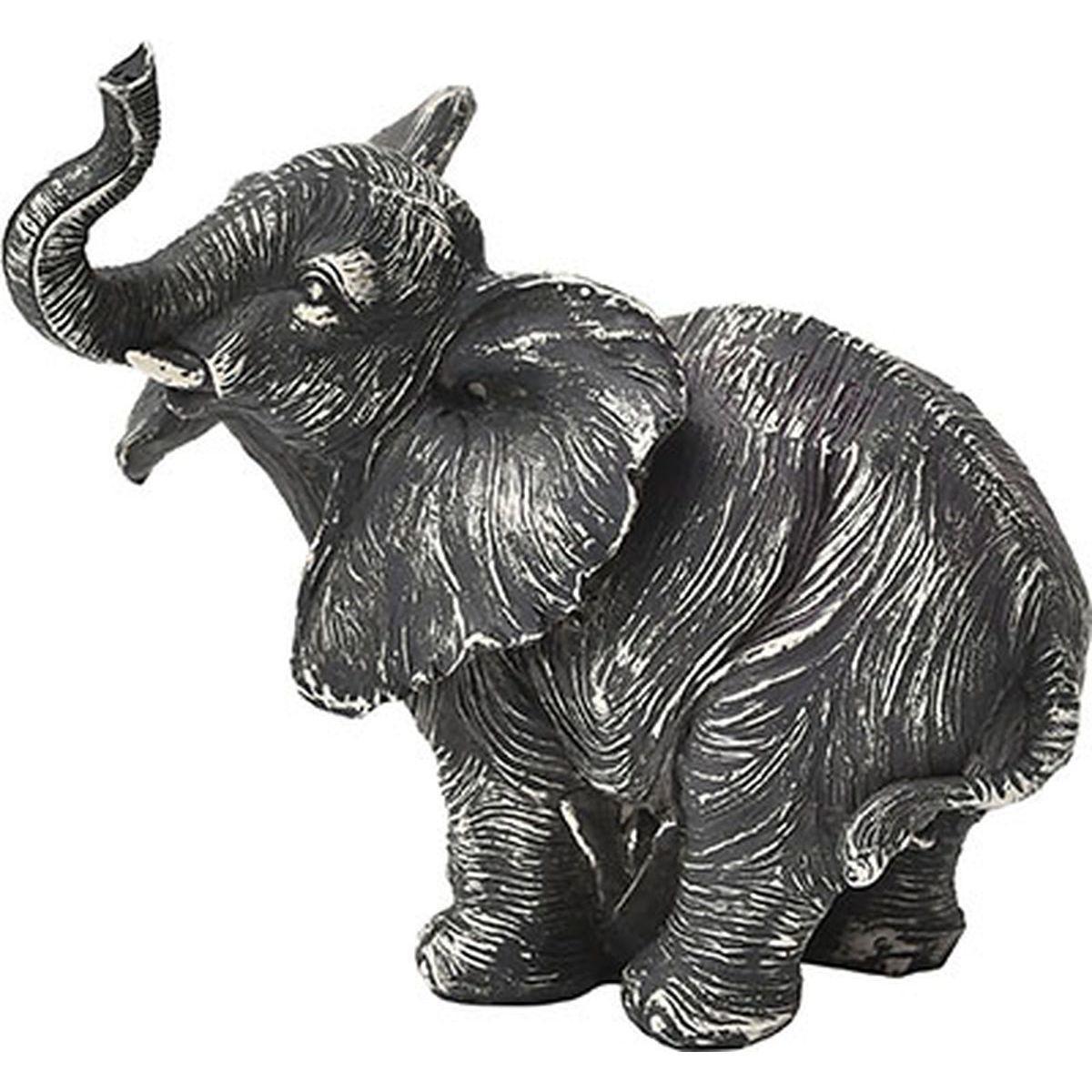 STATUETTE ELEPHANT DEBOUT EN POLYRESINE - GRIS