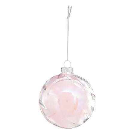 BOULE DE NOEL VERRE 100MM INT PLUME ROSE