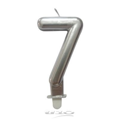 BOUGIE ANNIVERSAIRE CHIFFRE 7 AVEC SUPPORT PLASTIQUE H7,5CM ARGENT