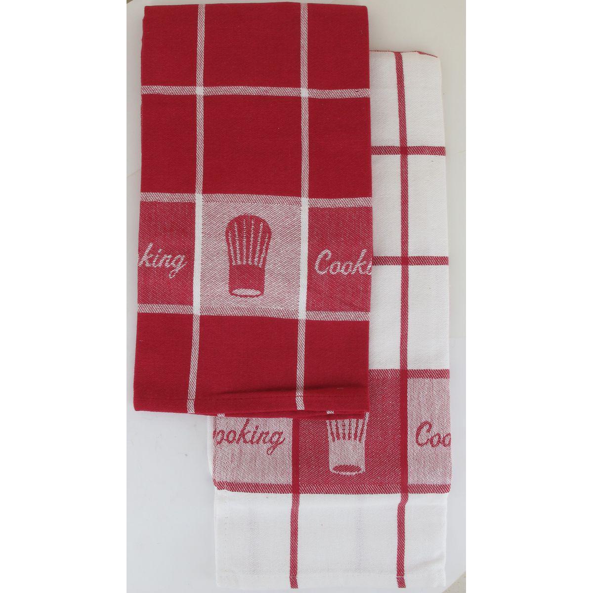 SET 2 TORCHONS COOKING 50X70CM COTON - BLANC/ROUGE
