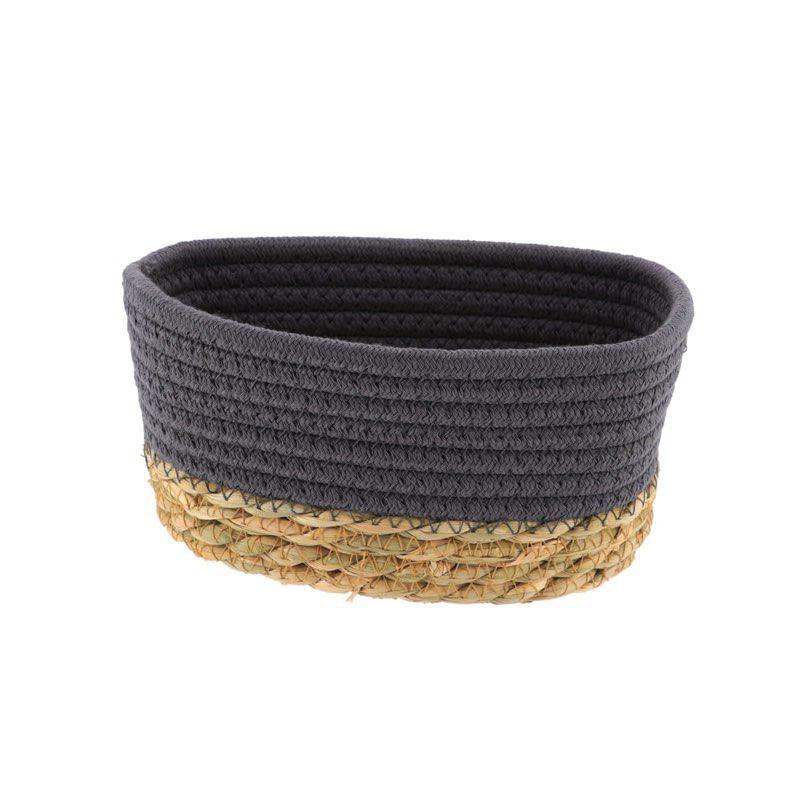PANIER RECTANGULAIRE PM COTON/MATIERE VEGETALE 19X11X10 CM - GRIS/NATUREL
