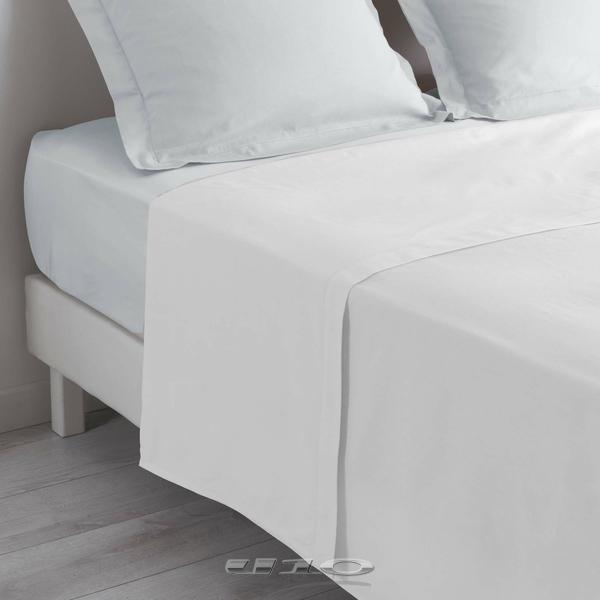 DRAP PLAT 2 PERSONNES 240 x 300 CM UNI 57 FILS LINA BLANCHE + POINT BOURDON