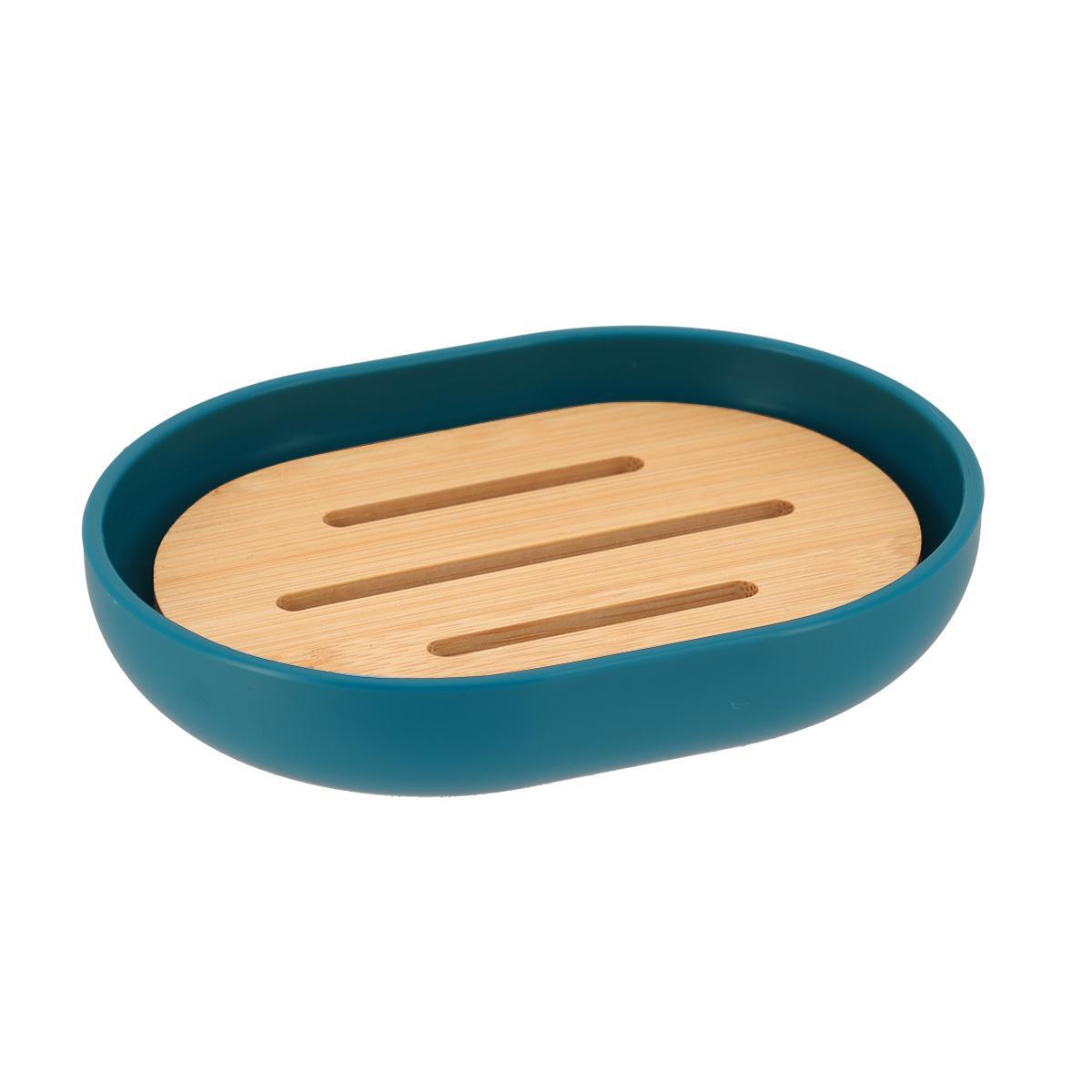 6474265 - PORTE SAVON OVAL - BLEU/BAMBOU