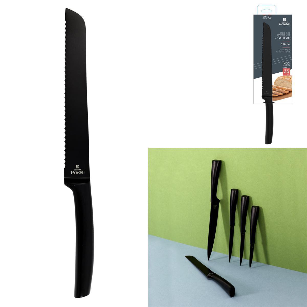 COUTEAU A PAIN ACIER INOXYDABLE NOIR LAME 20CM