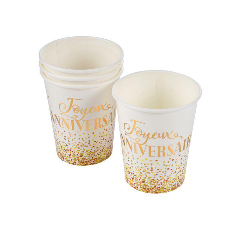 SET DE 6 GOBELETS EN CARTON 25CL ANNIVERSAIRE GOLD