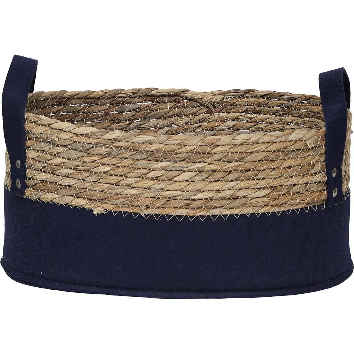 PANIERE OVALE MM FEUTRINE/MATIERE VEGETALE 33X23X16 CM - BLEU MARINE/NATUREL