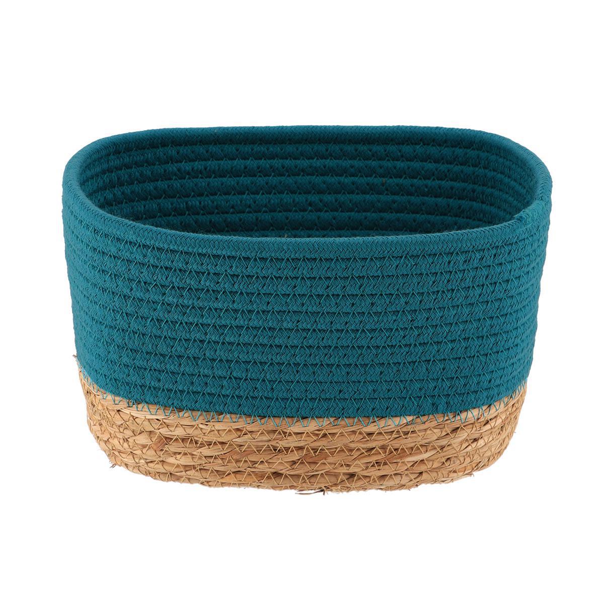 PANIER RECTANGULAIRE GM COTON/MATIERE VEGETALE 23X15X13.5 CM - BLEU TAHITIEN/NAT