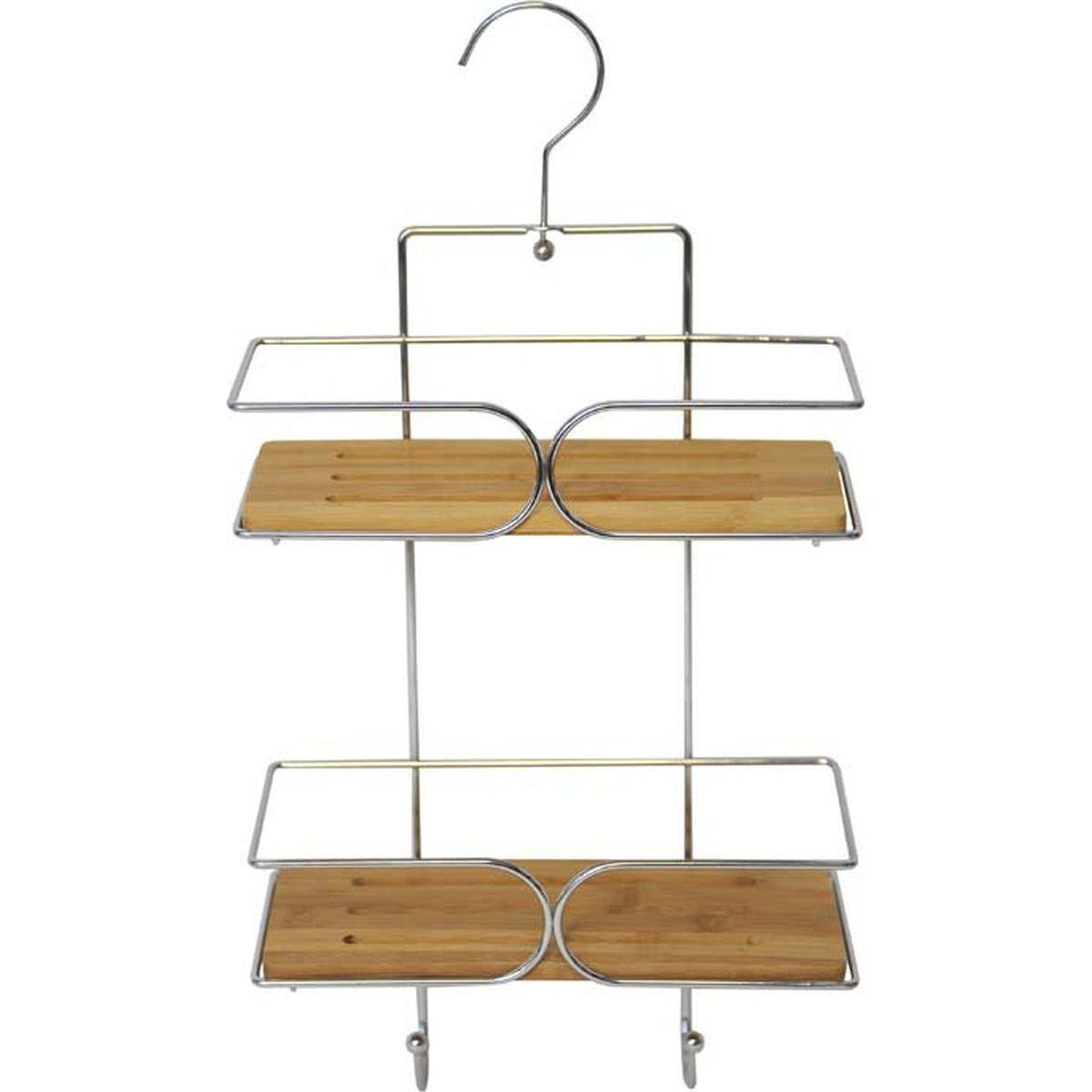 SERVITEUR FIL METAL + 2 ETAGERES BAMBOU - CHROME / BAMBOU