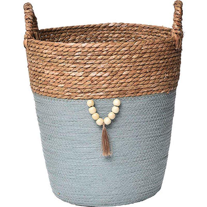 PANIERE RONDE MM MATIERE VEGETALE ET PAPIER AVEC DECO 38X35 CM - NATUREL/VERT KA