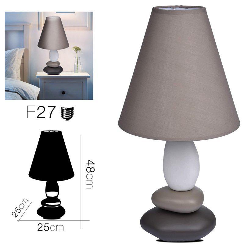 LAMPE CERAMIQUE 3 GALETS TAUPE Diam 25 x 48 cm