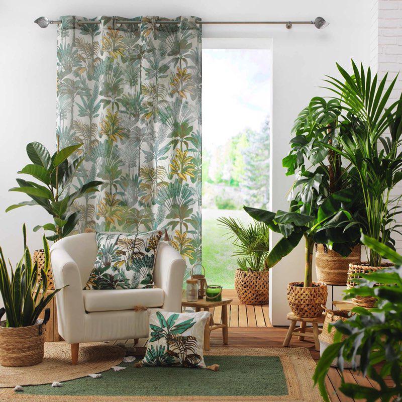 PANNEAU A OEILLETS 140 x 240 CM EFFET LIN TISSE IMPRIME BALINESIA