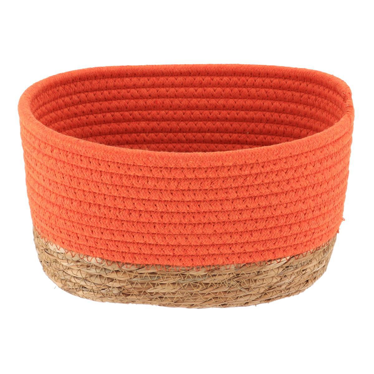PANIER RECTANGULAIRE GM COTON/MATIERE VEGETALE 23X15X13.5 CM - ORANGE/NATUREL