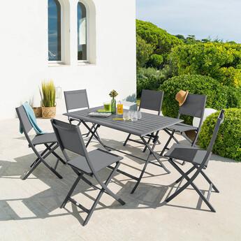 TABLE AZUA PLIANTE EN ALUMINIUM - 6 PLACES - GRAPHITE / TONKA / GRIS FUME