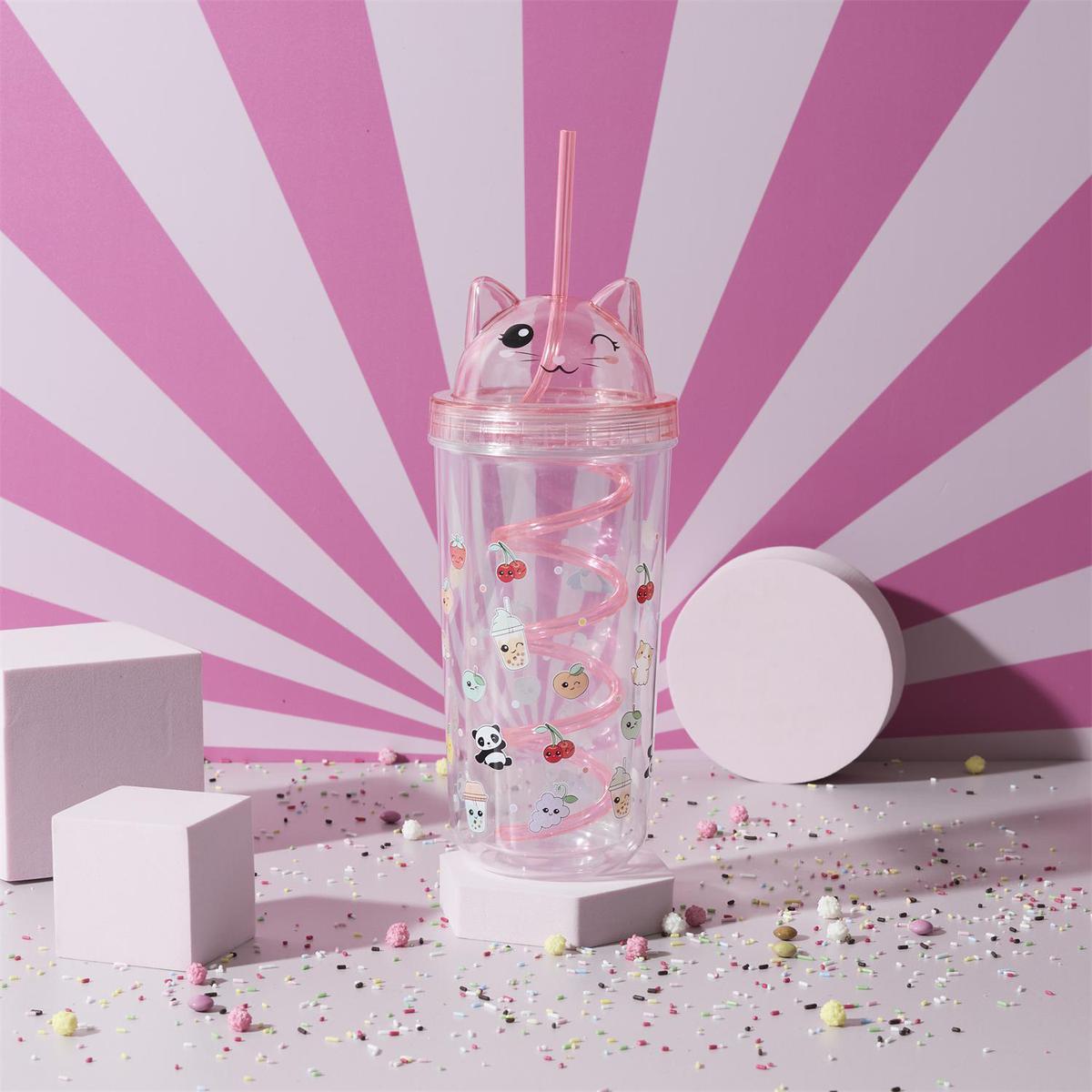 MUG DE TRANSPORT A PAILLE CHAT 40CL KAWAII