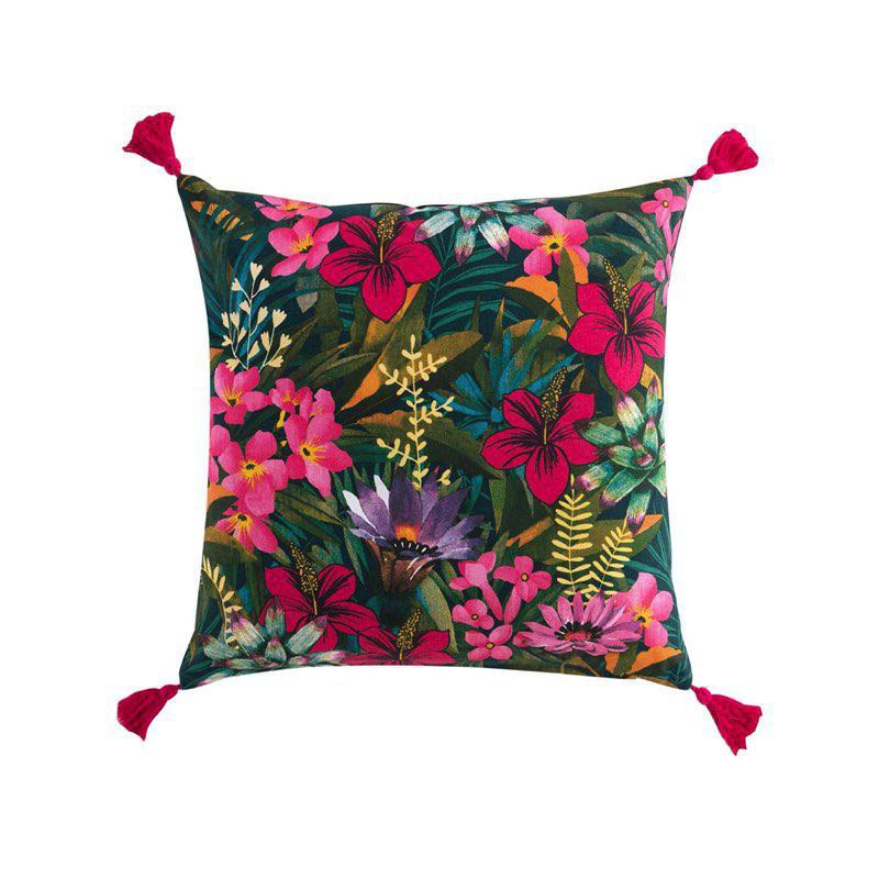 COUSSIN DEHOUS. COMPR. POMPONS 45 x 45 CM COTON IMPRIME EDEN FLOWER DES. PLACE