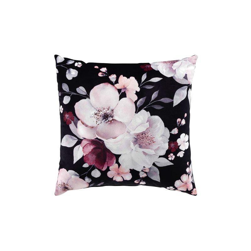 COUSSIN COMPRESSE 40 x 40 CM VELOURS IMPRIME VELVET FLOWER NOIR DES. PLACE