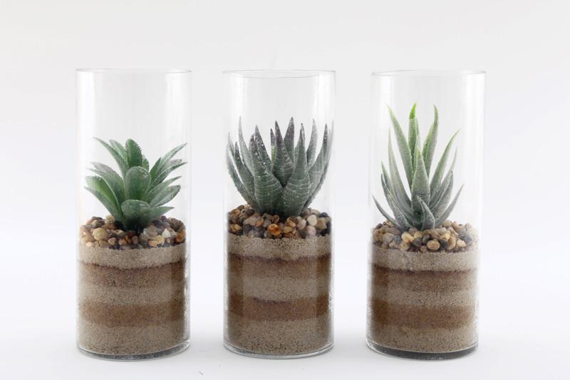 PLANTE GRASSE EN POT AV SABLE 8X20CM