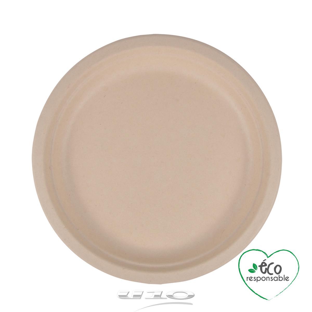 SET DE 12 ASSIETTES RONDES EN CANNE A SUCRE D22CM NATUREL