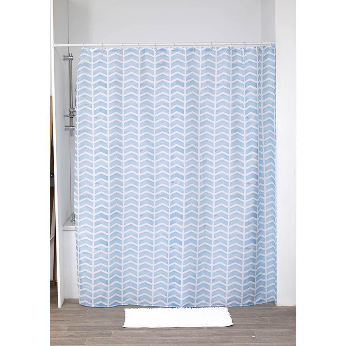 RIDEAU DE DOUCHE POLYESTER IMPRIME 180X200CM /12 ANNEAUX PP BLANC - OCEANE
