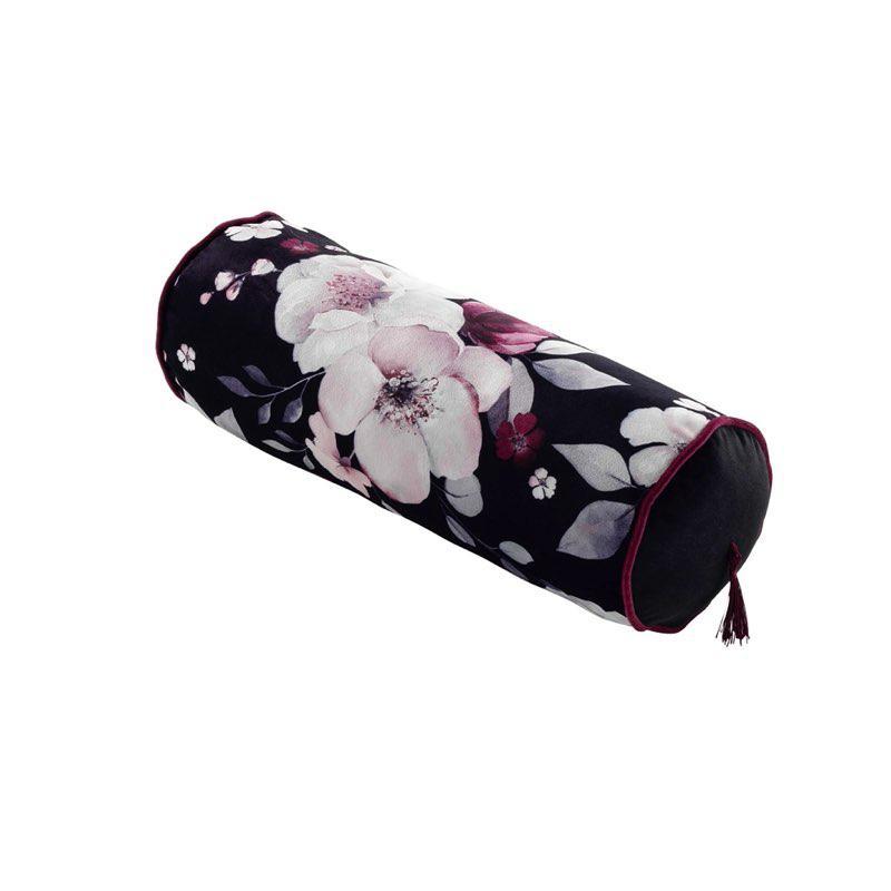 COUSSIN COMPRESSE POMPON PASSEPOIL 5 x 40 CM VELOURS IMPRIME VELVET FLOWER NOIR