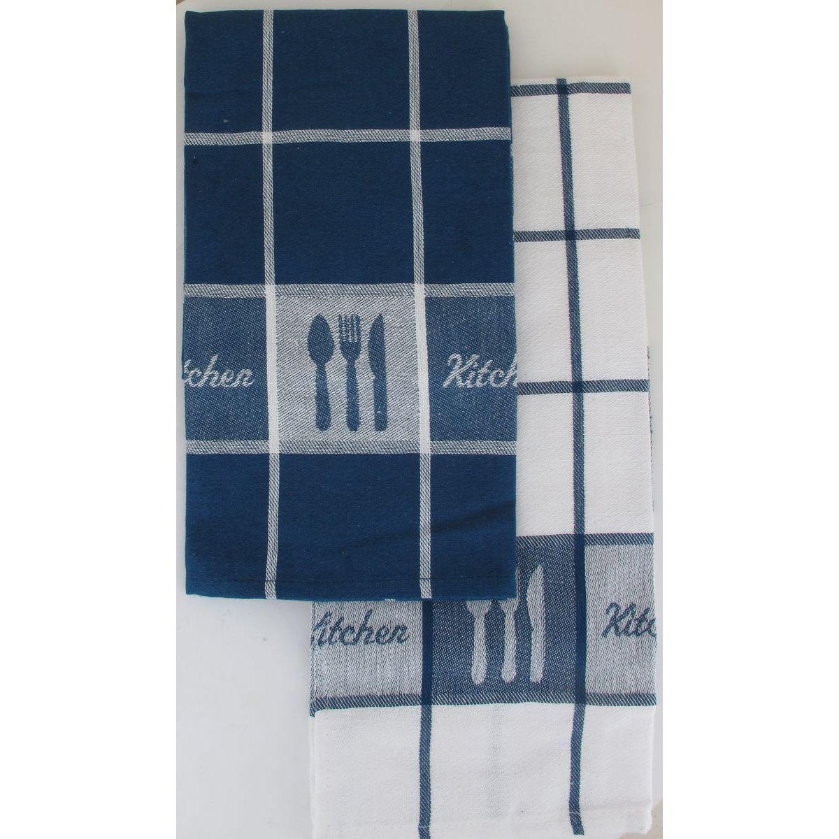 SET 2 TORCHONS PAUL 50X70CM COTON - BLANC/BLEU