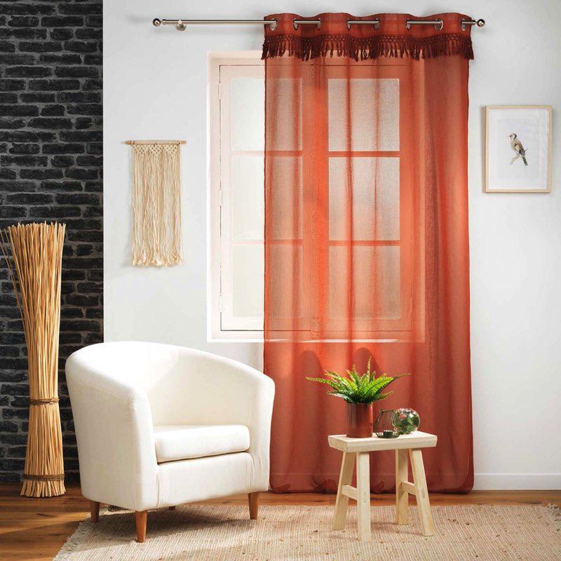 PANNEAU A OEILLETS 140 x 240 CM VOILE SABLE+FRANGES ZAGORA TERRACOTTA