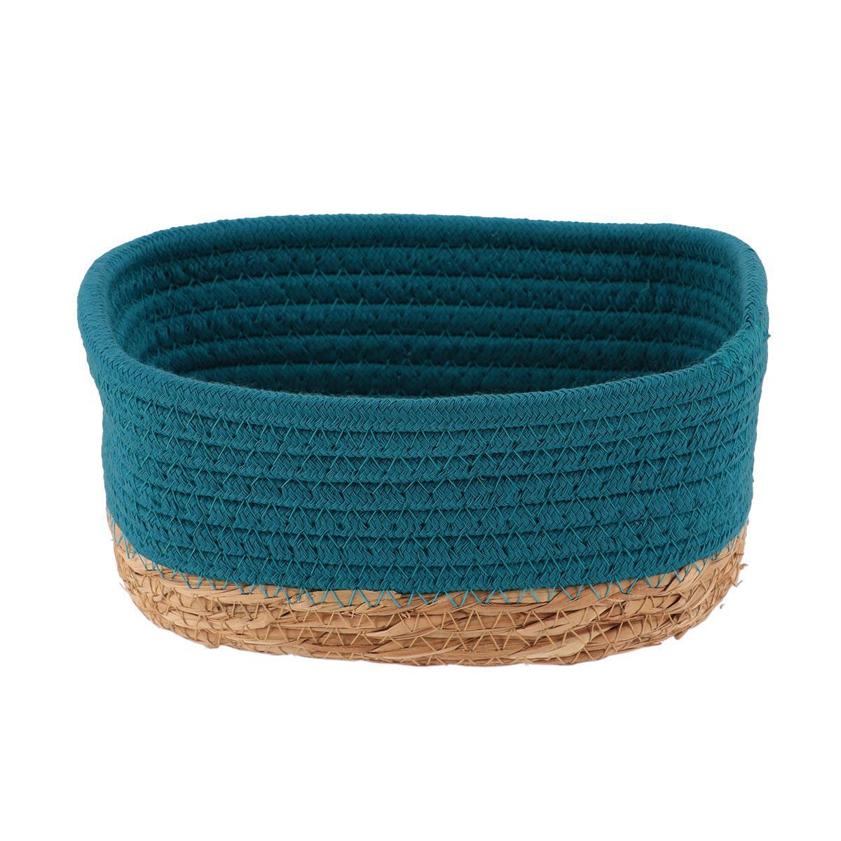 PANIER RECTANGULAIRE PM COTON/MATIERE VEGETALE 19X11X10 CM - BLEU TAHITIEN/NATUR