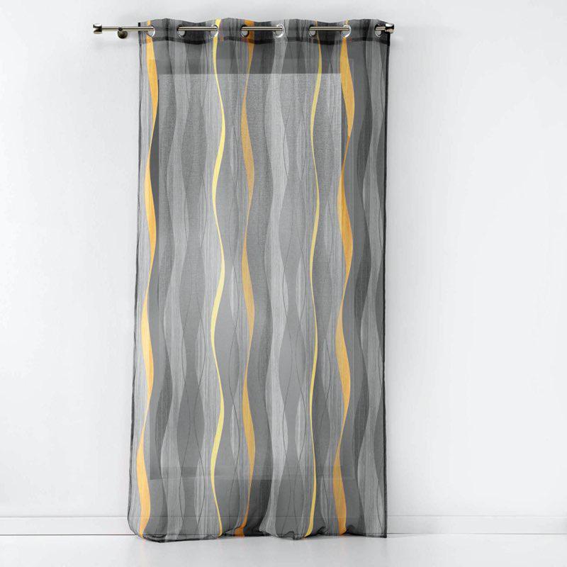 PANNEAU A OEILLETS 140 x 240 CM VOILE SABLE IMPRIME ONDULYS JAUNE/ANTHRACITE