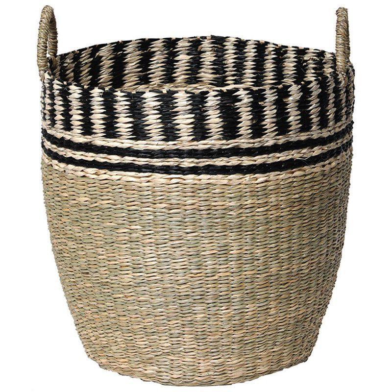 PANIERE A LINGE RONDE MM MATIERE VEGETALE AVEC BORD TRESSE 47X37 CM - NATUREL/NO
