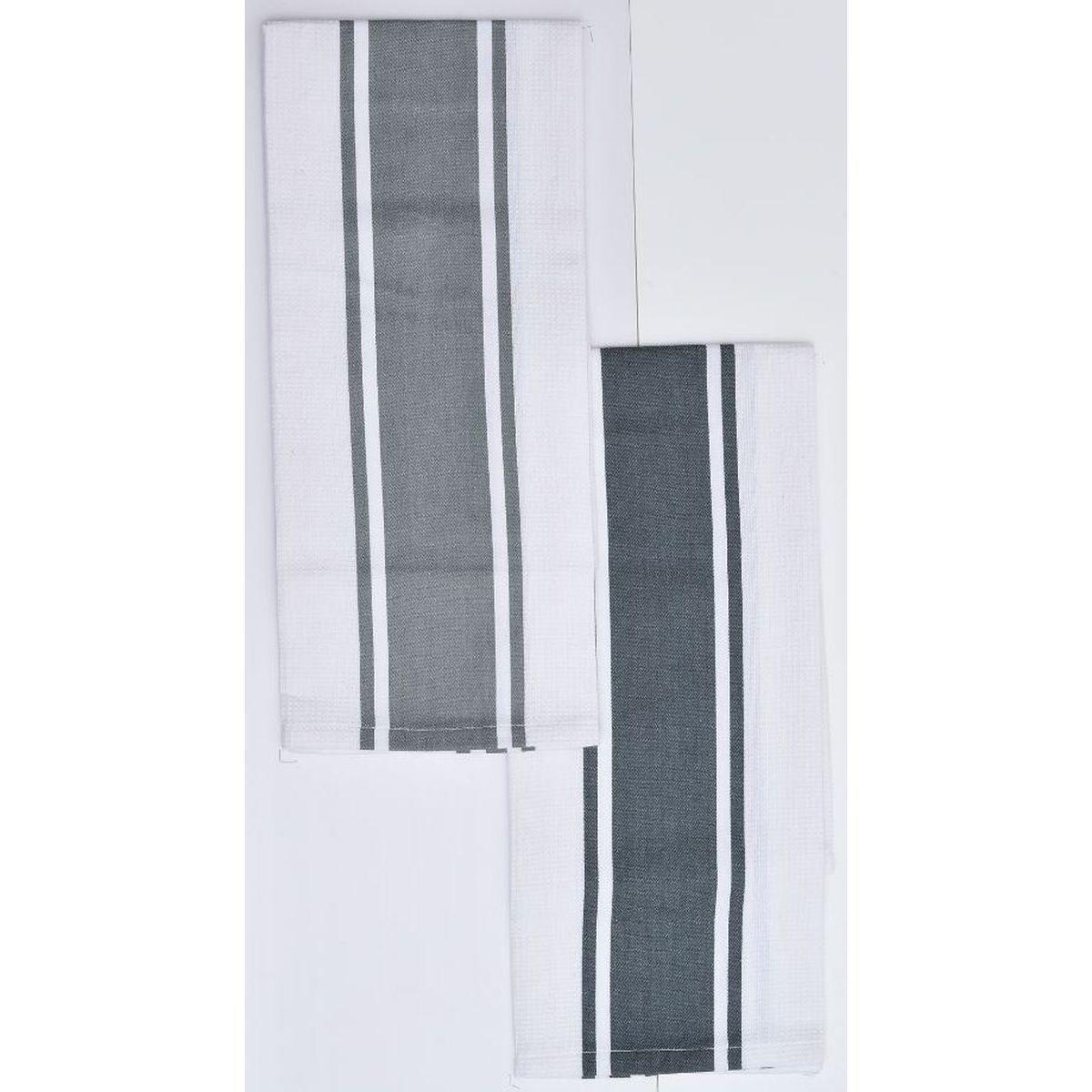 SET 2 TORCHONS NID D'ABEILLE/RAYES LEONIE 50X70CM COTON - GRIS FONCE/GRIS CLAIR