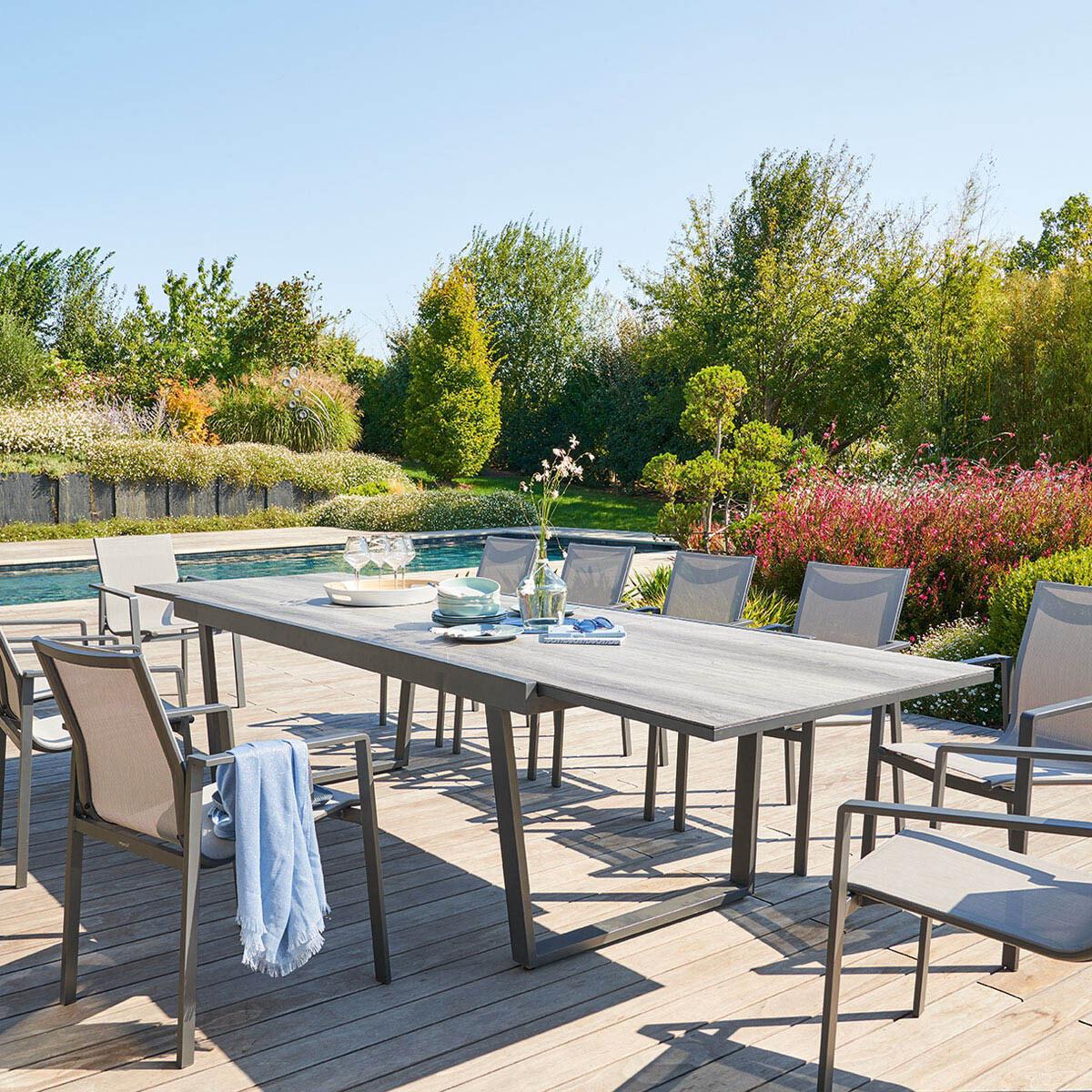 TABLE DE JARDIN EXTENSIBLE UNIONE - GRIS FUME & GRAPHITE - 12places
