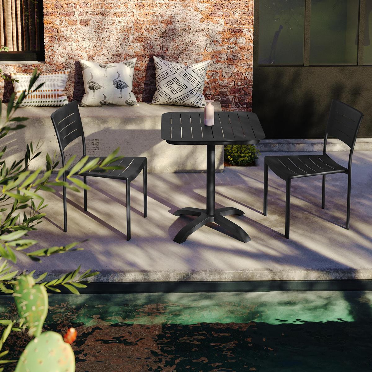 Lancez les invitationsFacile à installer et idéale pour le quotidien, diners en petit comité ou déjeuners de famille seront célébrés autour de la table de jardin "RIMINI".
