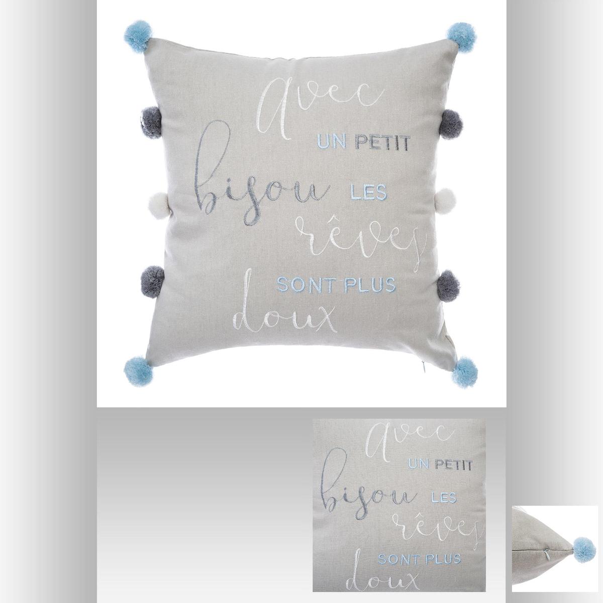 COUSSIN 10 POMPOMS BROD GRIS