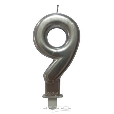 BOUGIE ANNIVERSAIRE CHIFFRE 9 AVEC SUPPORT PLASTIQUE H7,5CM ARGENT