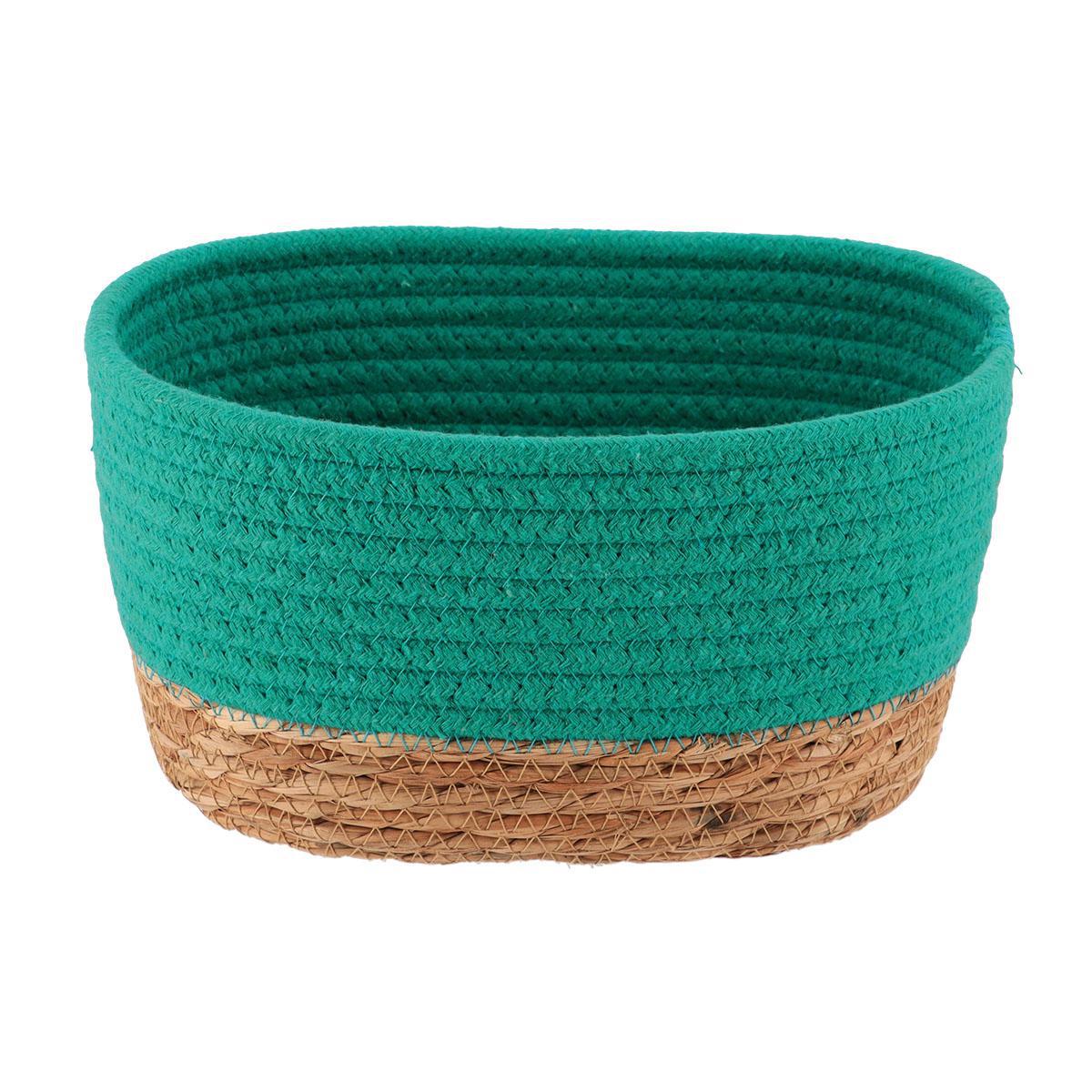PANIER RECTANGULAIRE GM COTON/MATIERE VEGETALE 23X15X13.5 CM - VERT CARAÏBES/NAT