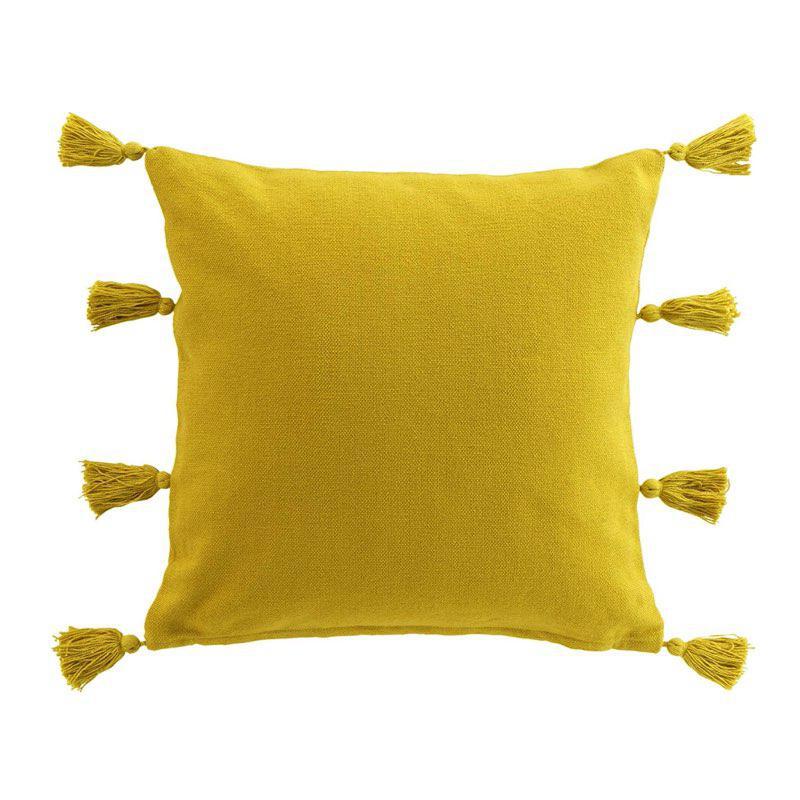 COUSSIN DEHOUS. COMPR. POMPONS 45 x 45 CM COTON UNI TASSELINA JAUNE