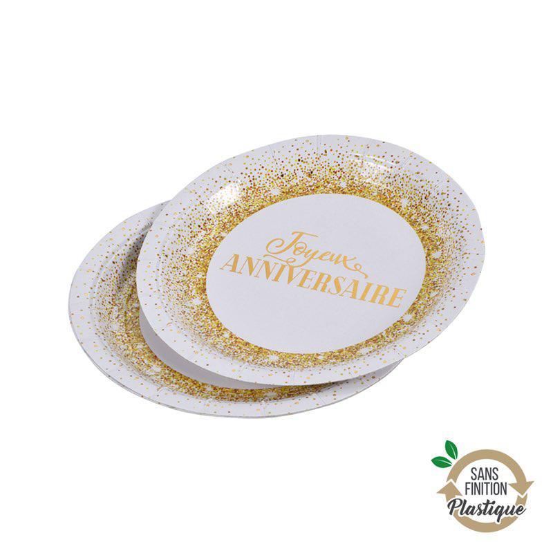 SET DE 6 ASSIETTES EN CARTON D18,5CM ANNIVERSAIRE GOLD SANS FILM PLASTIQUE