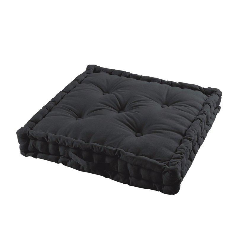 COUSSIN DE SOL 60 x 60 x 10 CM COTON UNI PANAMA NOIR