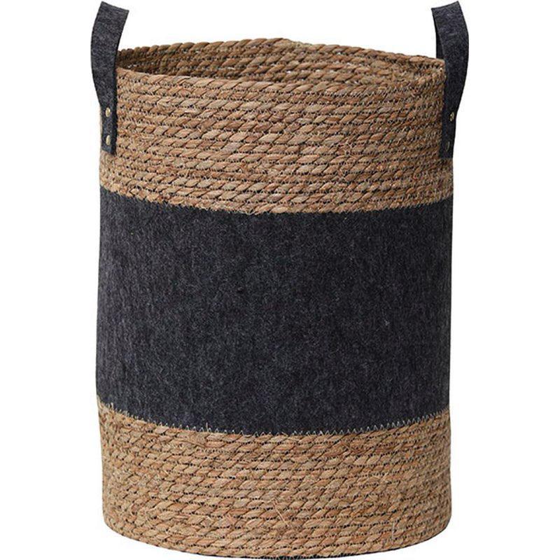 PANIERE RONDE MM FEUTRINE/MATIERE VEGETALE 45X34 CM - GRIS FONCE/NATUREL