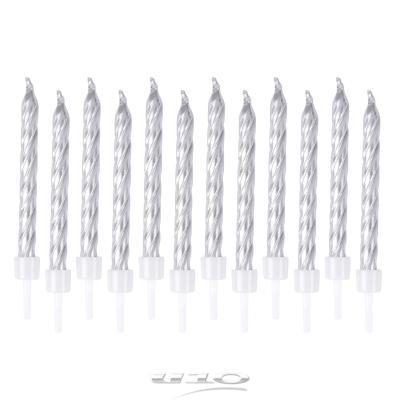 SET DE 12 BOUGIES METALLIQUES AVEC SUPPORT H6CM ARGENT